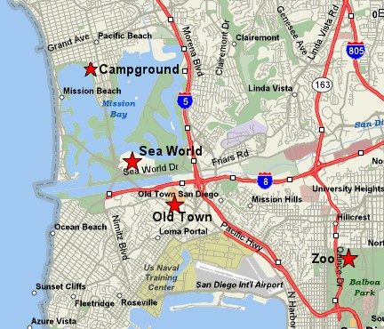 A full driving day got us to San Diego where we are camping in a campground on Mission Bay that we have used several times in the past. Very nice and conveniently located. |