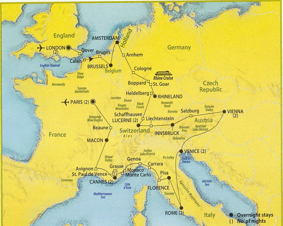 On May 8th, after a 4:45 am (!!!) wake-up call, we joined the group for a whirlwind bus tour of the best of Europe under the able direction of Trafalgar tours. Over a period of 19 days, we visited XX cities in 10 countries, including: