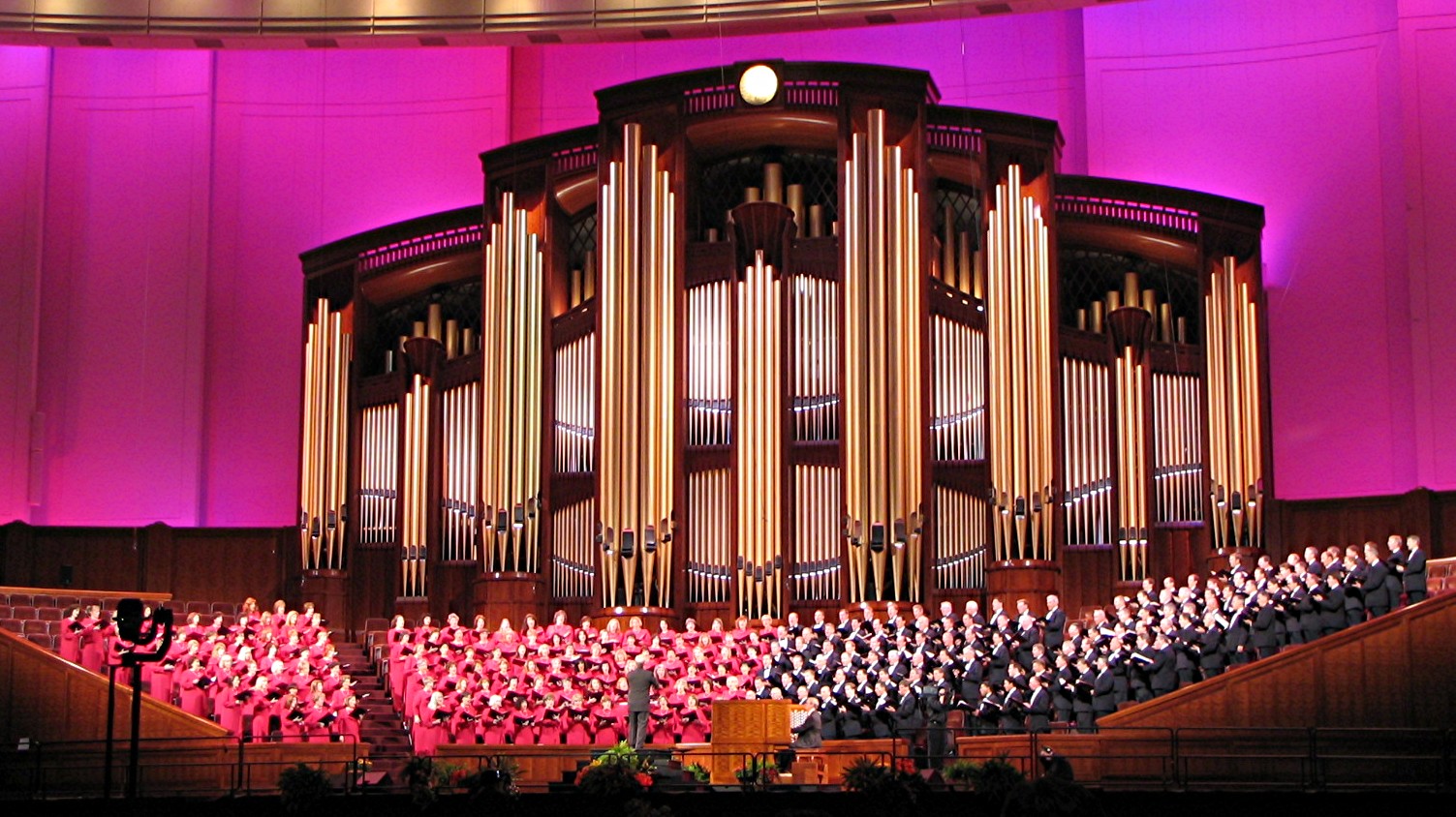 Salt Lake City At the tourist information office we learned that on Sunday mornings, they record the weekly TV broadcast by the Mormon Tabernacle Choir live and the public is welcome to attend the recording. It is traditionally performed in the Tabernacle but that facility was close for major renovations. Instead, they were using the new Convention Centre, a 21,000 seat theatre built in 2000 for their semi-annual General Assemblies. The 7000 pipe organ was subdued for the broadcast so we toured the Temple square and went back to the theatre at 2:00 for an organ recital where we were able to hear the full power of the organ. In Temple Square, we had the guided tour of the public buildings by two young girls from Germany. They were in Salt Lake City for two years, doing their compulsory missionary service. We also visited the house that was the official residence of Brigham Young when he was head of the church and first Governor of Utah. It was also the home of his third wife who ran the household and served as hostess for official receptions, etc. Apparently, wives one and two declined the honour/stress of being the official hostess. It was quite a spectacular house, with 12 foot ceilings and decorated in the European style of the day. No comment on where he got his money. The other wives lived in houses nearby. |