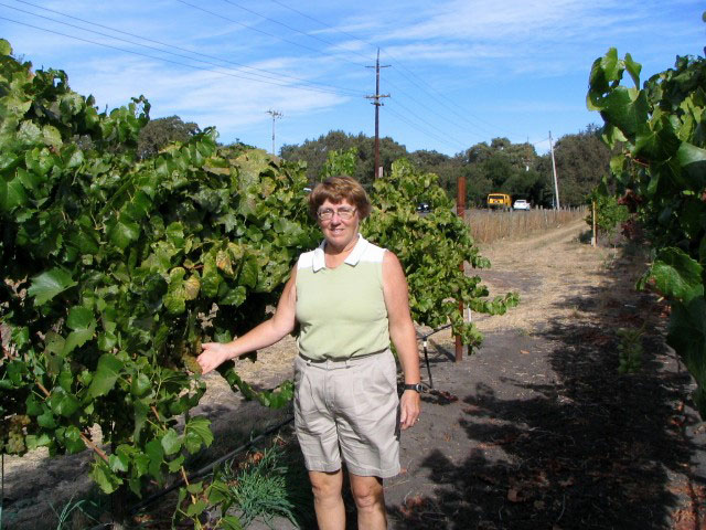 favorite of the neighbourhood children. Petaluma is in the wine country north of San Francisco. We had planned to go wine tasting in Napa but when we got to Sonoma, their Chamber of Commerce slogan got us: “Sonoma is for Wine, Napa is for auto parts”. So we spent two days around there sipping and sightseeing. We found lots of wonderful wines but, unfortunately, they were all from small vineyards so we will never find them to buy again. Sonoma also is the site of the Sonoma Mission, the furthest north of the California missions. We visited the Sebastiani Winery where they were crushing Merlot grapes and we were able to see the whole process. It was fascinating. The Merlot grapes are tiny – about the size of saskatoons. Apparently it is an excellent year for them. We also used Petaluma as our base for touring San Francisco. We spent two days seeing the sights there: in the Golden Gate State Park, on Fisherman’s Wharf, at the Palace of the Arts, up Telegraph Hill, over to Alcatraz and dinner in Chinatown. We were up and down so many hills that the clutch started complaining so we stopped on the way out of town for a fluids check. Everything was fine so Allen just tightened the clutch cable and we were on the road again. |